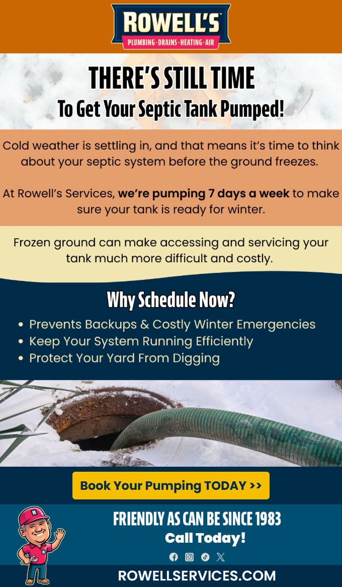 At Rowell's Services, we're pumping 7 days a week to make sure your tank is ready for winter.
